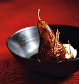 В моем любимом ливанском ресторане подают перепелку, натертую корицей: она напоминает мне корнуоллских куропаток, которых мама готовила к Рождеству. Я объединила два рецепта, и получилась прекрасная, немного пряная закуска, которая отлично подойдет для праздничного вечера. ![]() Эта легкая и в то же самое время насыщенная вкусом закуска выглядит по-настоящему празднично, устроившись на ярко-зеленых листьях кресс-салата и мяты. Если ваши друзья на диете, в меню торжественного ужина останется добавить десерт, и только. Горячая закуска, 6 порций Подготовка: 15 минут Время приготовления: 30 минут 50 г соленого сливочного масла, размягчить 6 целых перепелок 1 ч.л. молотой корицы 1/2 ч.л. молотого тмина 2 граната 100 г водяного кресса, удалить крупные стебли 2 ст.л. крупно порубленной мяты Разогрейте духовку до 190°C. Натрите каждую перепелку сливочным маслом. Положите в нее кусочек соленого масла и половину коричной палочки. Смешайте молотую корицу и тмин и посыпьте смесью перепелок. Положите на противень и запекайте 30 минут, пока сок не станет прозрачным. Выньте перепелок из духовки и оставьте на 10 минут. Раскатайте гранаты на столе, сильно прижимая руками, чтобы отделить зерна от кожуры. Разрежьте каждый на две части и отбейте деревянной ложкой, чтобы высвободить зерна. Разложите кресс и мяту на 6 тарелок. Сверху на каждую тарелку положите перепелку, посыпьте гранатовыми зернами и подавайте. Зеленая смесь мяты и водяного кресса лучше всего сочетается с насыщенным ароматным белым вином — возьмите, к примеру, французское бордо Chateau Tour Leognan 2004 или любое белое Pessac Leognan. Источник: Азбука вкуса © |